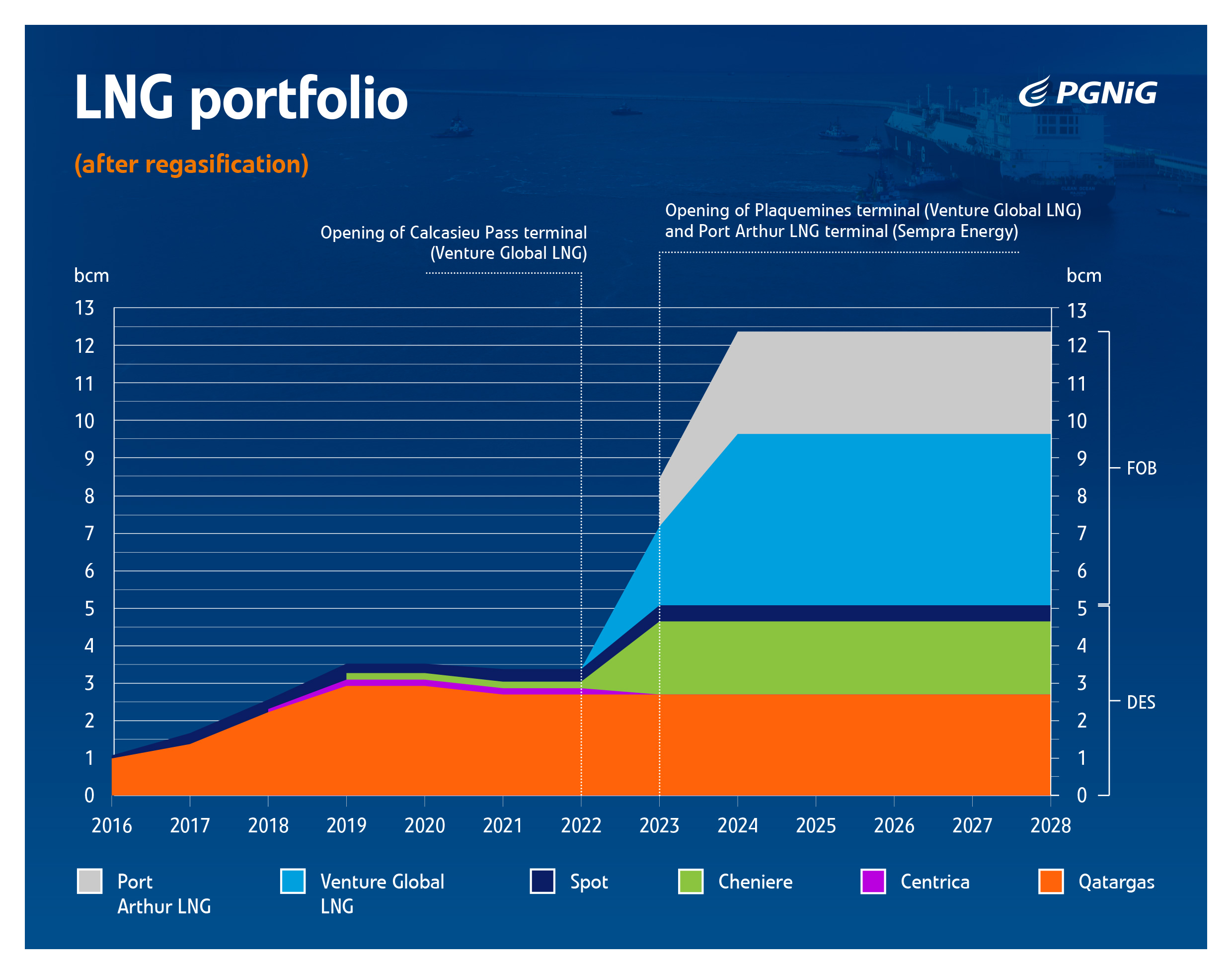 PGNiG contracts with Venture Global LNG projects have been concluded in September 2018 for 20 years in the FOB (Free-on-Board) formula. This means that from the moment of loading in the liquefaction facility, the purchaser, in this case PGNiG, controls the LNG on board, including deciding on the cargo’s destination.